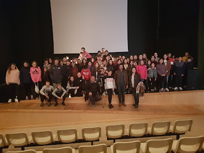 O mércores 27 de febreiro, o noso alumnado de 1º da ESO mantivo un interesante encontro con este deportista ordense. Iván Raña acudiu acompañado por membros da súa familia, polos seus pais, a súa irmá, Natalia, e non deixou de facer referencia a eles e á importancia que teñen no seu éxito deportivo. Comentou que desde sempre lembraba o deporte na súa casa e agradeceu ese apoio incondicional ao longo da súa carreira (algúns deses momentos puidemos desfrutalos nos vídeos e imaxes que se proxectaron). Nese contexto de charla distendida, Iván tivo un xesto cariñoso coa súa nai, Lina, sentada en primeira fila, eloxiando o moito que lle gusta a súa tortilla...